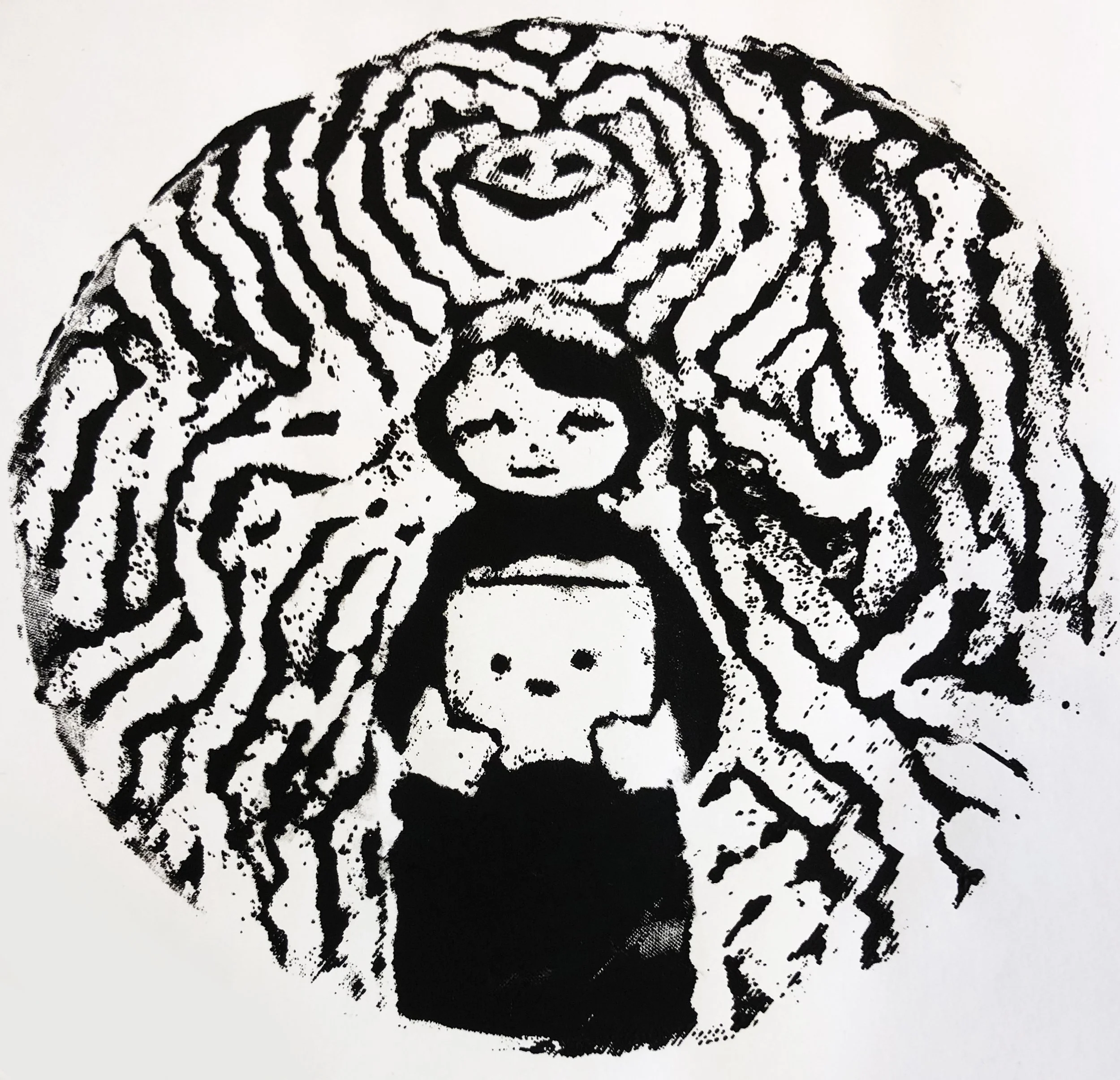 View fullsize Vulgata, thrifted mesh screen print, 2022 View fullsize untitled, gouache on paper, 2023 View fullsize untitled, oil pastel on paper, 2023